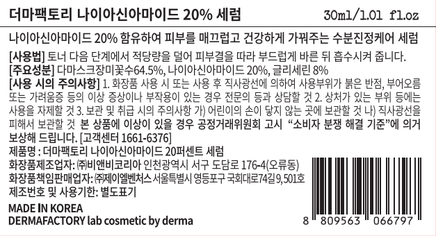 Dermafactory Niacinamide 20% Serum, 30ml, 1ea