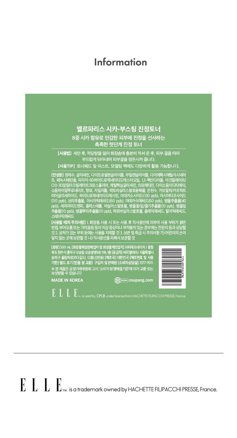 Elle Paris Cica-Boosting Calming Toner, 500ml, 1ea